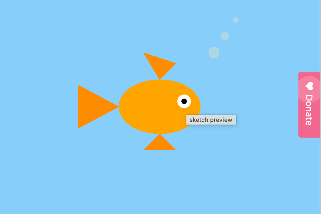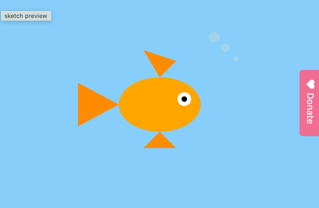 I am building on the goldfish sketch and started small by making the bubbles move. I was not encouraged to build a full aquarium, so I kept the design simple and focused on showing the difference between static and variable elements. The goldfish remains static while the bubbles rise and reset, creating motion. I did not want to complicate the process at this stage, but in the future I would like to add more fish and experiment with additional static and variable elements.