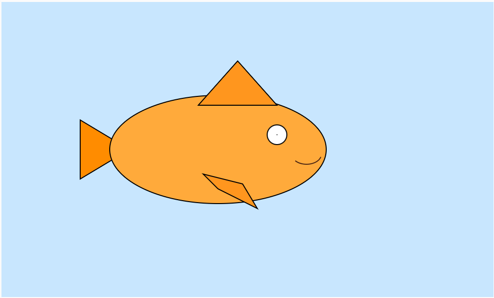I picked an orange color for the body and fins, and added a simple white and black circle for the eye.